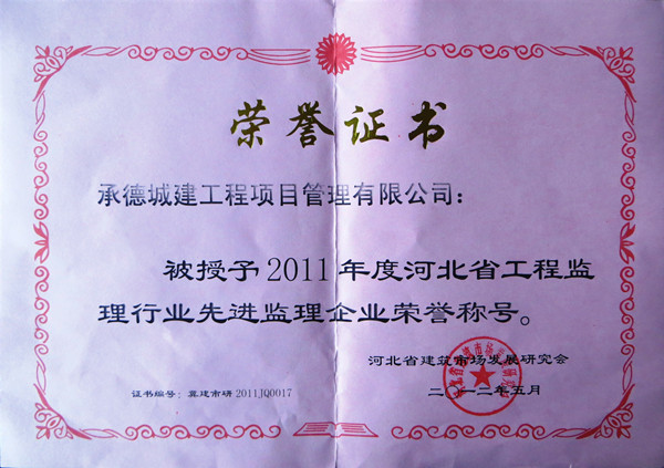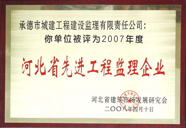 省級(jí)榮譽(yù)——河北省先進(jìn)監(jiān)理企業(yè)